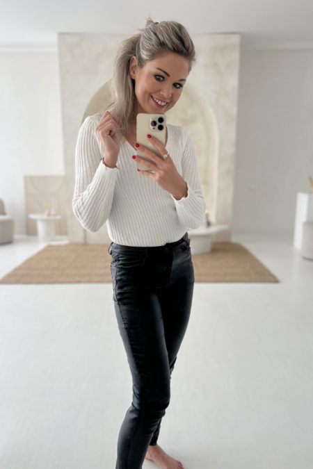 €34.99Wow deze broek is niet alleen mooi, maar zit ook nog eens heerlijk! Een zwarte broek met coating welke een subtiele leather look geeft. Voordeel van dit soort broeken is dat ze een toffe uitstraling hebben, maar ook nog eens eindeloos te combineren zijn. Verkrijgbaar in verschillende maten. Valt op maat.