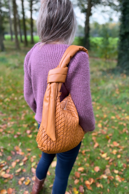 Zoals wij hierboven ook al vertelde kan je de kleur paars op heel veel manieren in een outfit combineren. Ga je voor een casual look? Combineer de trui dan met een high waisted jeans en witte sneakers. De iets cropped lengte zorgt ervoor dat je de trui perfect kan dragen met een high waisted broek of rok. Dit geeft niet alleen een speelse look, maar ook een mooie gedefinieerde look.